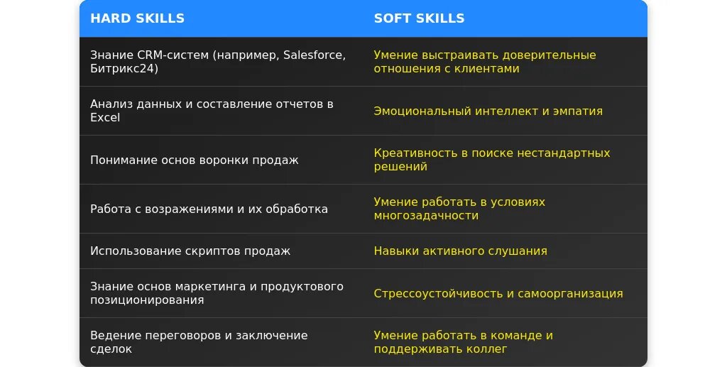 - Упоминание ключевых навыков, связанных с продажами.