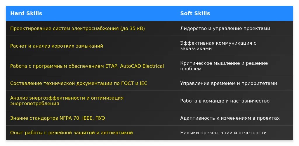 Анализ вакансии для старшего инженера-электрика