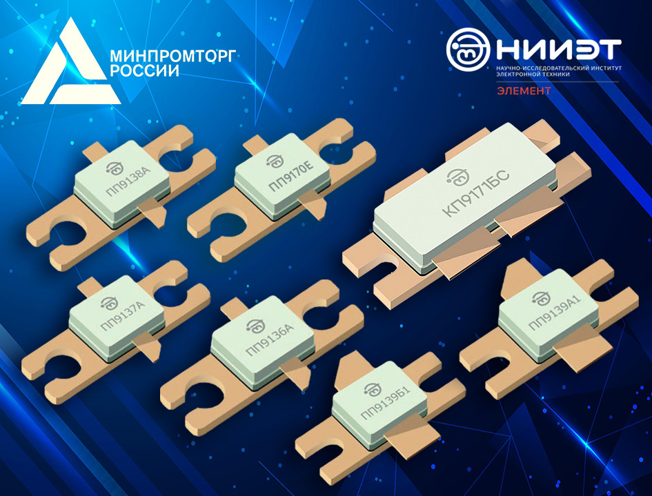 Это мощные СВЧ-транзисторы на основе нитрида галлия ПП9136А, ПП9137А, ПП9138А, ПП9139А1, ПП9139Б1, ПП9170Е и мощный линейный LDMOS-транзистор КП9171БС.