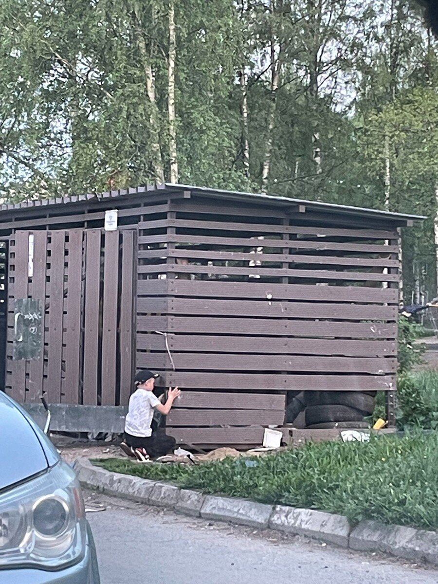Юный горожанин на каникулах решил разобрать помойку на доски у сквера Машиностроителей на улице Мелентьевой. Непонятно, зачем ему это понадобилось. Инцидент заснял проезжавший мимо на автомобиле горожанин. Видео и фото опубликовали в паблике Живой Петрозаводск.