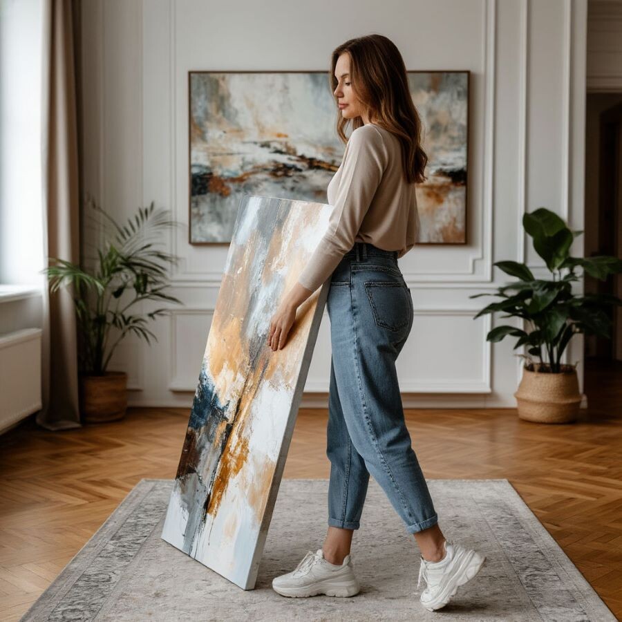Картина в интерьере — как платье в примерочной: пока не примерите, не поймёте. Мы привозим работы на дом, чтобы вы увидели, как свет играет с мазками или как абстракция меняет геометрию комнаты.