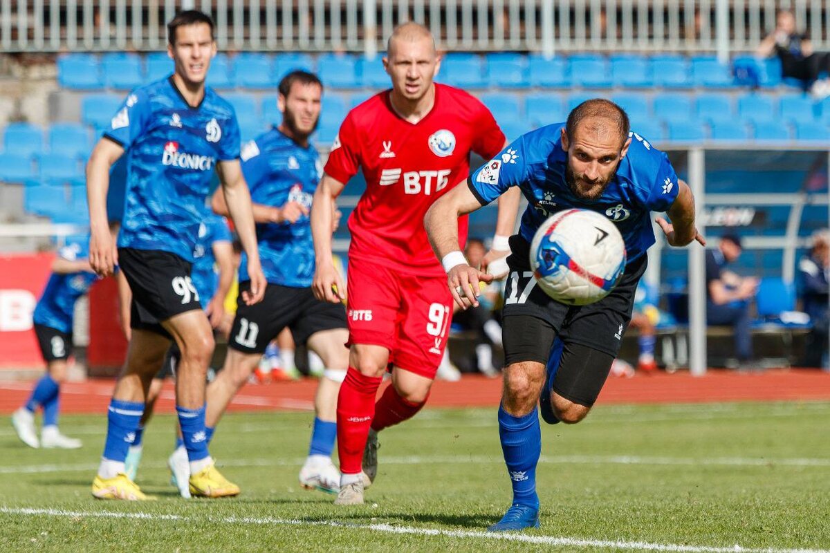 💪🏻 «Динамо» на вершине ⚽️ В 12 туре первенства России в первой группе дивизиона «Б» второй лиги динамовцы в Ставрополе принимали футболистов «Севастополя». Матч завершился убедительной победой бело-голубых. На 34-й минуте счет открыл Махач Абдулхамидов, на 60-й минуте лучший бомбардир бело-голубых удвоил преимущество принимающей стороны, а итог на 74-й минуте подвел Артем Степанович – 3:0. Эта виктория позволила нашей команде продлить беспроигрышную серию до пяти поединков и подняться на верхнюю строчку в турнирной таблице. 📅 Следующую встречу национального первенства «Динамо» проведет 7 июня на выезде против «Сочи-2».