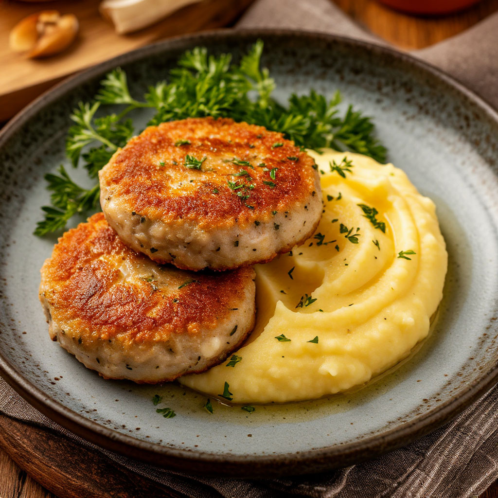 Друзья, а вы помните, как в детстве открывалась дверь, и с кухни доносился аромат жареных котлет и свежесваренного пюре? А на плите — под крышкой томились рыбные котлетки, пышные, мягкие, с запахом укропа… Мама всегда подавала их с ложкой картофельного пюре и кружкой компота — и этот вкус ни с чем не спутаешь. Сейчас многие берут полуфабрикаты или заказывают доставку. Но домашние рыбные котлеты — это совсем другая история. Они мягкие, сочные, с настоящей рыбой и тёплой заботой в каждом кусочке. А пюре… Ну кто откажется от пюре с маслицем и молочком? 🥕 ИНГРЕДИЕНТЫ: Для пюре: • картофель — 6–7 средних клубней • молоко — ½ стакана • сливочное масло — 30–50 г • соль — по вкусу Для рыбных котлет: • рыбное филе (хек, минтай, треска) — 500 г • лук — 1 шт. • яйцо — 1 шт. • белый хлеб — 2 ломтика • молоко или вода — для замачивания хлеба • соль, перец — по вкусу • зелень (укроп, петрушка) — по желанию • панировочные сухари • растительное масло — для жарки 👩🍳 ПРИГОТОВЛЕНИЕ: Картофельное пю