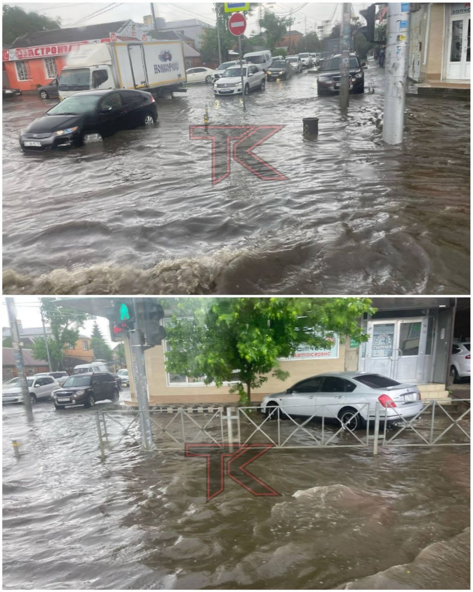 Центр Краснодара слегка поплыл после ливня.