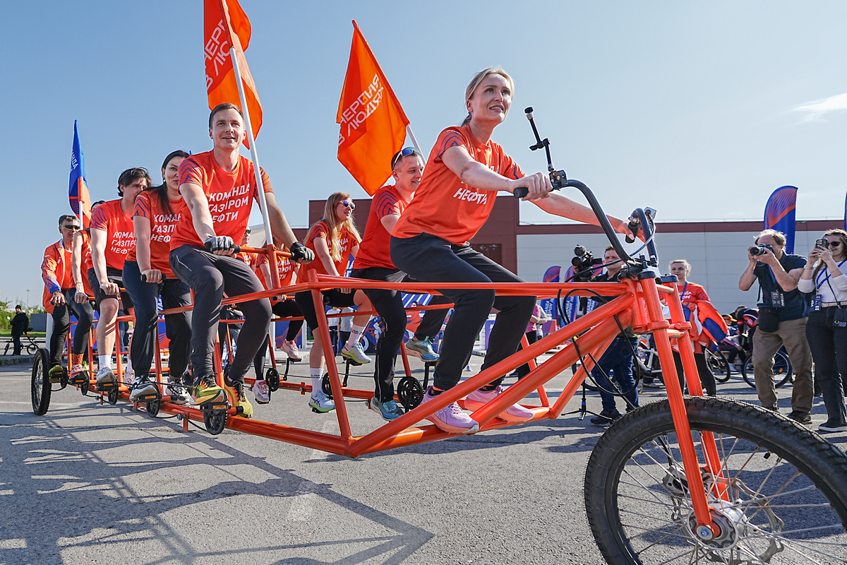 В Северной столице сконструировали уникальный трехколесный велосипед, рассчитанный на большое количество пассажиров. Этот экстраординарный транспорт был продемонстрирован на велопараде «ЗСД Фонтанка Фест», прошедшем 24 мая в рамках подготовки к 322-й годовщине Санкт-Петербурга. Велосипед был разработан специально для группового заезда. Во главе колонны парада гигантский велосипед, управляемый 10 участниками команды «Газпром нефти», успешно преодолел маршрут. Данной акцией велосипедисты выразили свою поддержку здоровому образу жизни. По словам Екатерины Передня, одной из участниц командного заезда, достичь финиша на этом огромном велосипеде удалось благодаря слаженной работе всех членов команды. Результат: 10 Рекордсмен: ПАО "Газпром нефть" Организатор: ПАО "Газпром нефть" г. Санкт-Петербург 24.05.2025