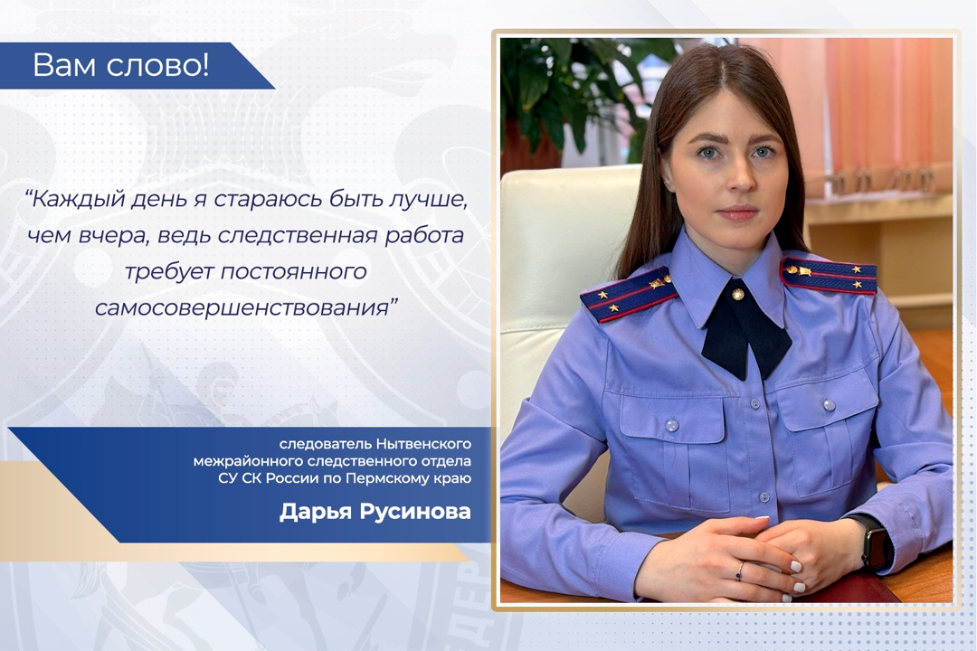 «Вам слово!». Следователь Нытвенского межрайонного следственного отдела СУ СК России по Пермскому краю Дарья Русинова