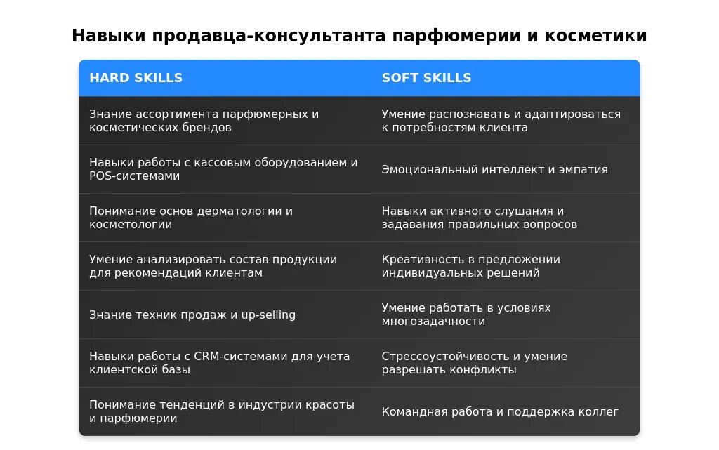 Технические навыки для продавца-консультанта парфюмерии и косметики