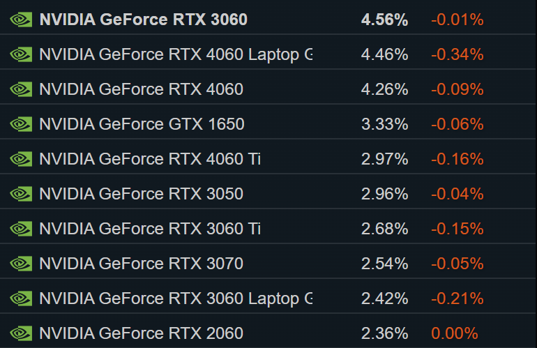 GeForce RTX 3060 снова на первом месте в статистике Steam, доля Windows 11 продолжает расти