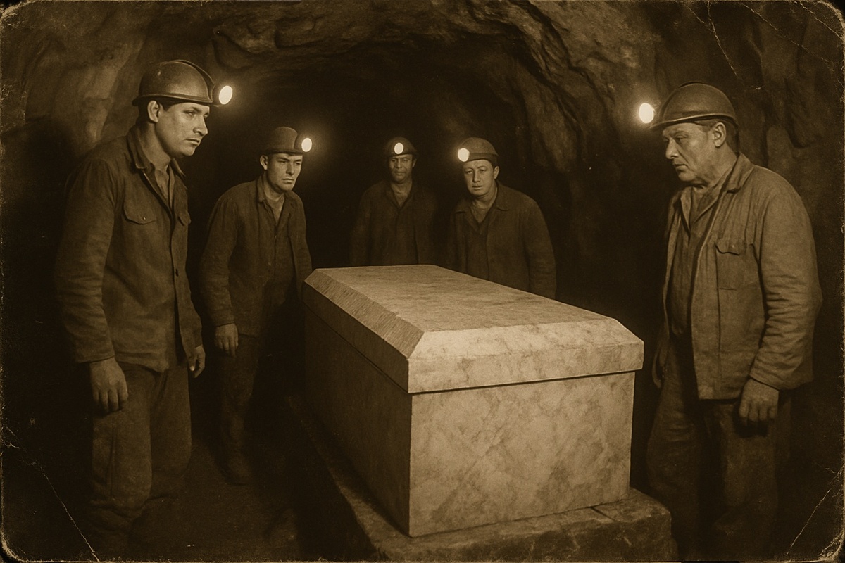 Я не сразу понял, что она живая. Мы просто копали, как всегда — порода ровная, стенка сухая. Потом пошёл другой звук — глухой, пустой. Кирками открыли — а за стеной каменная комната. Посередине — белый ящик. Саркофаг. Мы его открыли. А внутри — женщина. Кожа белая, глаза закрыты, будто спит. Жидкость розовая, у головы чёрная коробка. И тогда стало тихо. Слишком тихо.