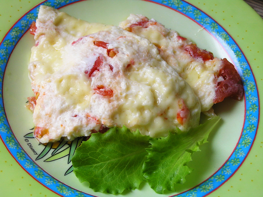 1-2 ст. л. растительного масла Приготовление: Яйца взбейте венчиком со сливками, добавьте нарезанный кубиками сыр. Затем нарезанный помидор (без кожицы). Посолите, поперчите, перелейте яичную смесь на разогретую сковороду, смазанную растительным маслом. Готовьте под крышкой на минимальном огне 5-7 минут, пока верх не схватится. Приятного аппетита! Вам также могут понравиться: