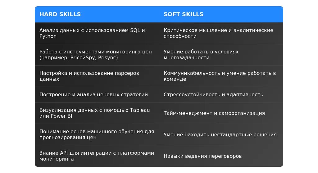 После адаптации: "Навыки: Excel (продвинутый уровень), Power BI, анализ больших данных, мониторинг цен."