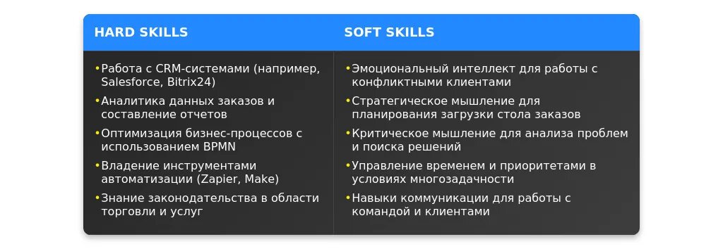 После адаптации: "Опытный менеджер стола заказов с навыками автоматизации процессов и работой в CRM-системах (Salesforce, Битрикс24)."