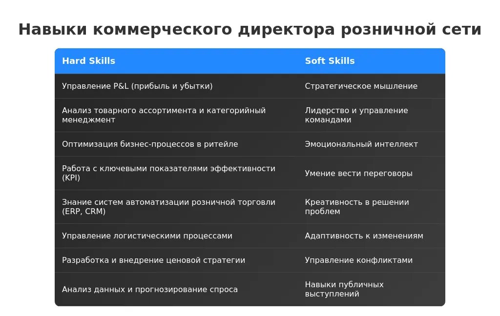 Ключевые слова: коммерческий директор, розничная сеть, управление продажами, развитие бизнеса, стратегическое планирование, управление ассортиментом, оптимизация процессов.