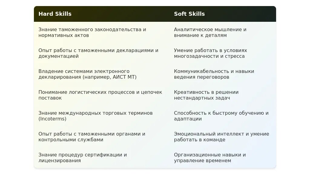 Коммуникабельность: успешное взаимодействие с таможенными органами и зарубежными партнерами.