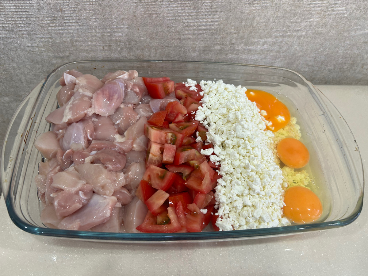 Если вы придерживаетесь правильного питания, то это блюдо станет одним из ваших любимых! Готовить очень быстро и просто! Итак, приступим: Вам понадобятся: Берем противень с высокими бортами. Помидоры и курицу нарезаем кусочками. Добавляем творог и яйца сразу в противень . Солим и перчим. Все ингредиенты смешиваем. Для тех, кто любит посыпать блюда сверху сыром, для получения сырной корочки ( я очень люблю), соответственно натираем сыр. Ставим в духовку, разогретую до 190 градусов, наше блюдо и запекаем примерно 35-40 минут. Масса по консистенции станет похожа на запеканку. Вот такая красота получается!!! Очень вкусно и диетично! Приятного аппетита!