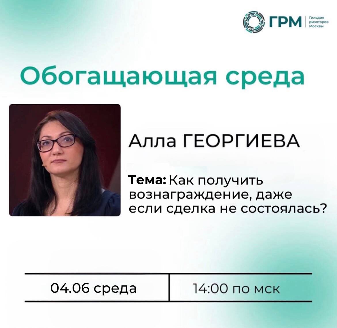 Мастер-класс: «Как получить вознаграждение, даже если сделка не состоялась?» 🟢 Юридическая сессия в рамках проекта «Обогащающая среда» Давайте честно: каждый риэлтор хотя бы раз сталкивался с тем, что клиент вдруг исчезает… А работа уже проделана, время потрачено — и всё впустую. Как защитить себя? Как законно получить вознаграждение, даже если сделка не дошла до финала? А главное — как свести к минимуму риски и не попасть под ответственность самому? 🗣 Спикер: Алла Георгиева —практикующий юрист с глубоким опытом в сфере недвижимости. ⚡️ Обязательна предварительная регистрация! На встрече разберём: ➖ Как правильно составить договор, чтобы оплата наступала не только «по факту сделки» ➖ Какие пункты обязательно включить, чтобы обезопасить себя ➖ Какие риски подстерегают риэлтора в работе с клиентами ➖ В каких случаях может наступить юридическая ответственность — и как этого избежать ➖ И что делать, если клиент хочет всё… но платить — потом (или никогда) Чёткий юридический язык +