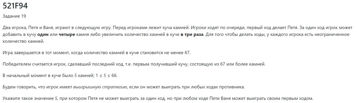 Одна из тенденций на ЕГЭ по информатике - использовать как можно более короткий код. Так, решение теории игр (задания 19-21) сжимают все короче. Я против такого подхода. Код надо уметь воспроизводить не наизусть, как стишок, а с пониманием того, как он работает. Экономия времени тут не аргумент. Задания могут получить измененную формулировку, память может подвести и программу не получится написать, или же просто будет ошибка, которая приведет к неверному ответу. Конечно, от подобного не застрахован и тот, кто пишет код с умом. Но вероятность будет значительно ниже.