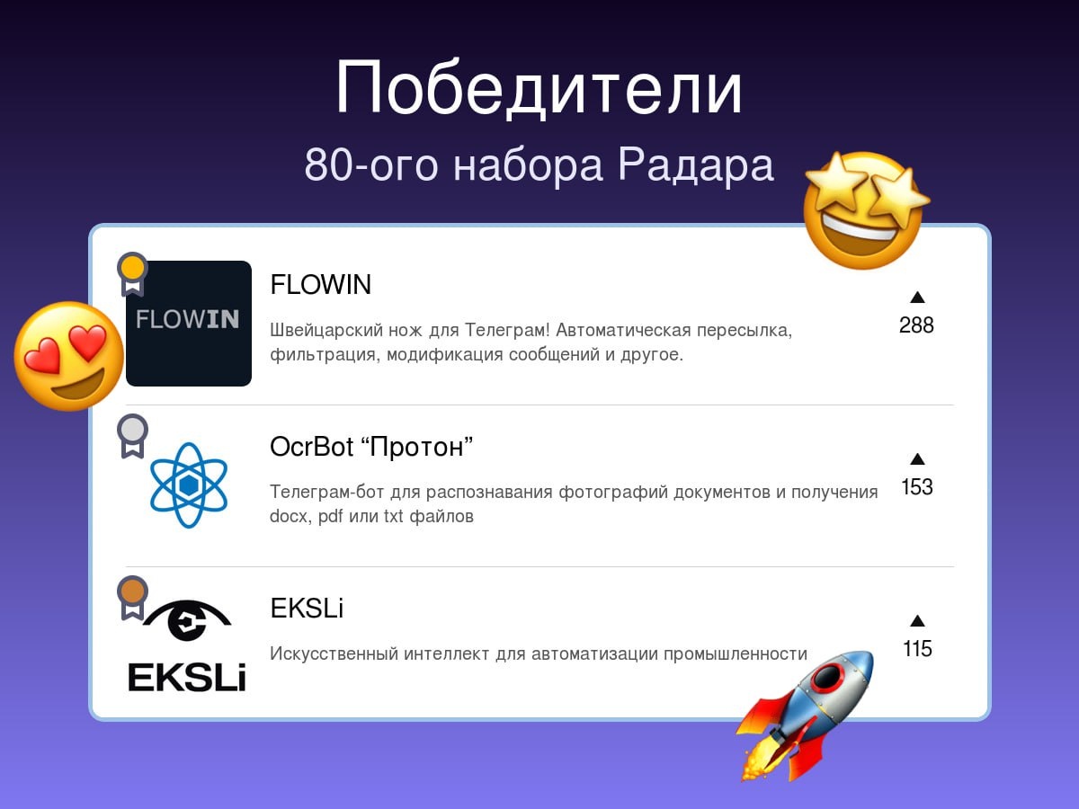 Новый раунд стартапьих бегов и новые проекты уже на вашем Радаре!🌚