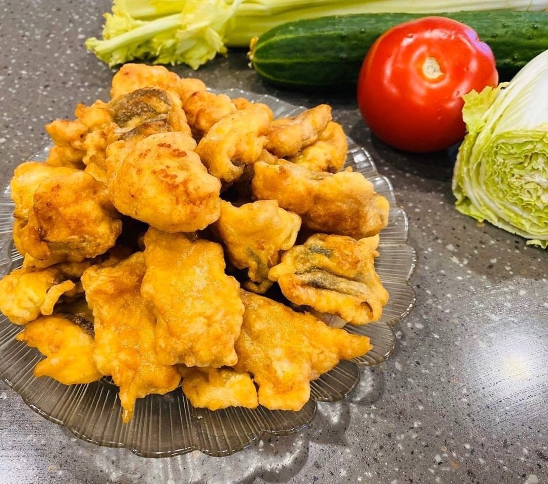Рафилә Шәмсетдиновадан кляр эчендә балык рецепты Балык горбуша түше, яхшылап кырып чистарттым, тышын салдырмадым. Вак кисәкләргә бүлгәләп чыктым, коры салфеткага куеп киптереп алдым. Кляр: 2 йомырка, 1-2 аш кашыгы сметана яки майонез, 1чеметем тоз, он чама белән, коймак камырынан чүт кенә куерак булырга тиеш. Сода салмадым,кайберәүләр сала икән, күперебрәк пешә ди... Як-ягын майда кыздырабыз, вуаля — әзер!