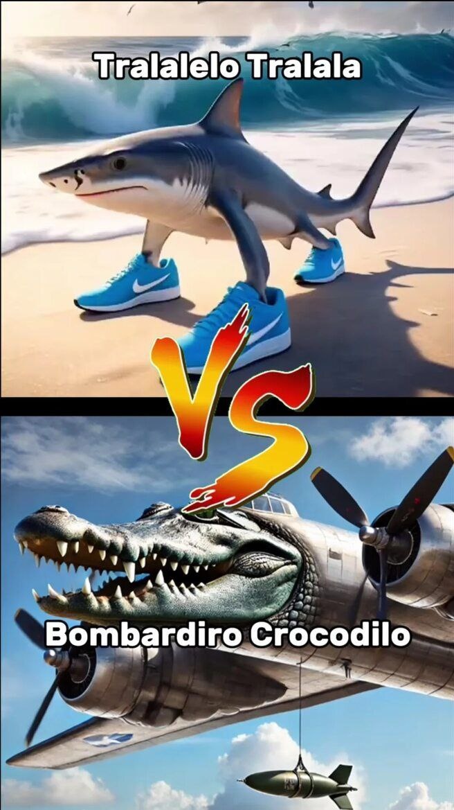 Квадроберы перед ним - цветочки. В соседних странах законодатели бьют тревогу, просят, как водится, защитить юность от вредной сущности. И наши бы подтянулись, просто неловко, в РФ ведь как бы и нет соцсетей, где орудует Бомбардило. Но обо всем по порядку: Бомбардиро Крокодило это сгенерированный ИИ персонаж абсурдистской мем-вселенной, наполовину крокодил, наполовину бомбардировщик B17 времен второй мировой. Помните, - Иван Федорович Крузенштерн - человек и пароход? Ну вот, а теперь Бомбардиро: крокодил и самолет. Среда обитания - вселенная брейнрота, коротких абсурдистских, бессмысленно-забавных или шокирующих видео, распространяемых в соцсетях, в основном в TikTok. Персонажи брейнрота - фантастические животные, говорящие на псевдо-итальянском языке. Крокодило Бомбардиро вовсе не одинок. Есть еще Тралалело Тралала - трехногая акула в кроссовках Nike, Тунг Тунг Тунг Сахур - человек-палка с бейсбольной битой, капибара на чиле с телом кокоса и многие другие. Генерить в нейронках странны