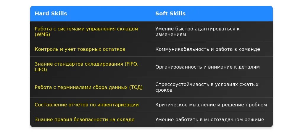 - Неправильные формулировки (например, "знаю WMS" вместо "работа с WMS: продвинутый уровень").
