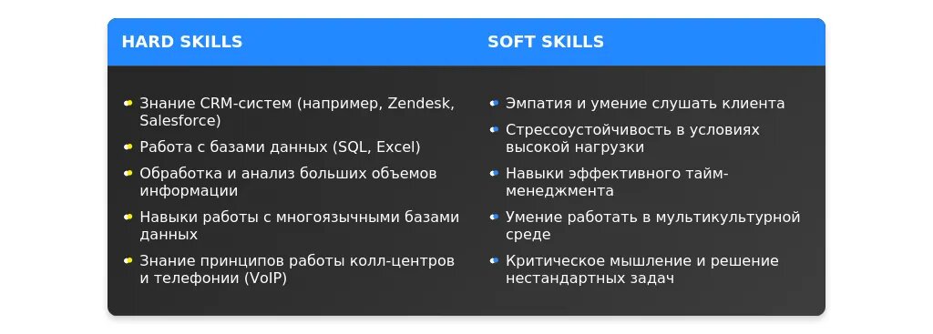 После адаптации: "Коммуникабельность, работа с CRM-системами, обработка входящих запросов."