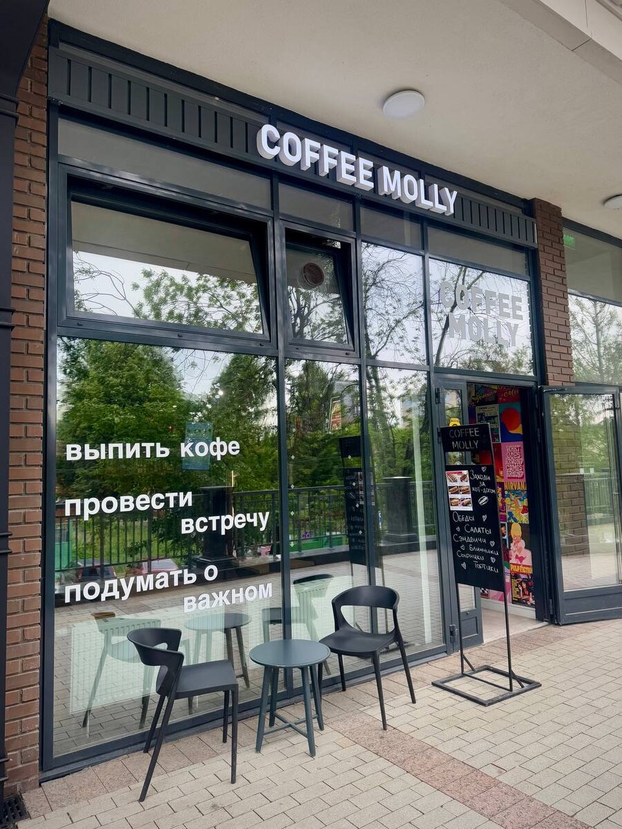 и сама продающаяся Кофе Молли место не самое удачное в самом здании, помещение невероятно красивое, но выручка маленькая если бы у меня было очень много денег, я бы просто купил её как место для посиделок с бариста с Ириной пообщаться было приятно, кофе норм, хот-доги вкусные, дальше поехал