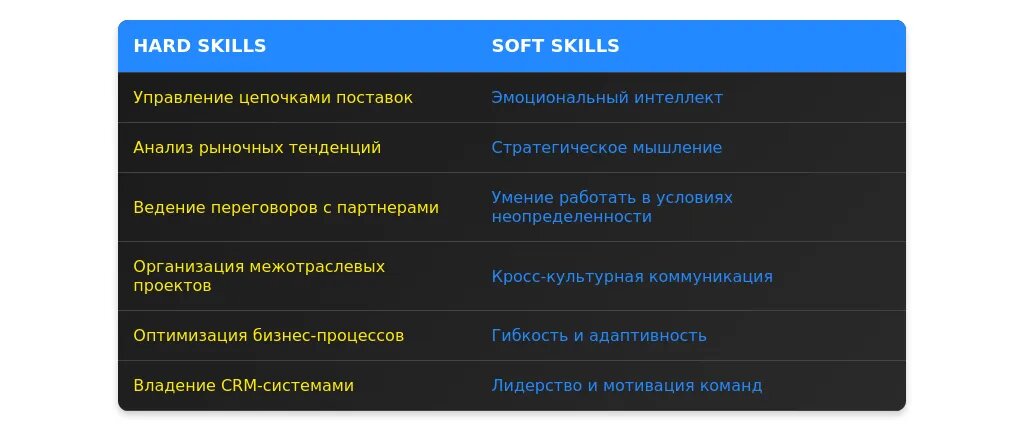 Пример 5: "Разработка стратегий сотрудничества" требует аналитических навыков и понимания рыночных тенденций.