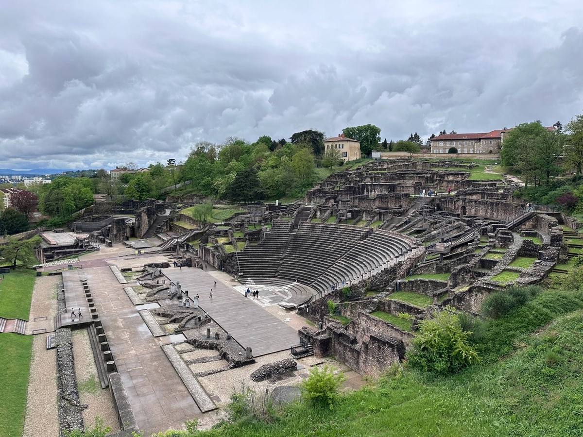 Закончу рассказ про Лион - город, который мне очень понравился, тремя деталями - достопримечательностями. Они не совсем увязываются вместе по смыслу, но не вижу смысла (простите за тавтологию) писать про каждое отдельную большую статью. Лион был известен еще в античные времена - в те времена он назывался Лугдунум. И от античности в Лионе остался видимый след - два живописно расположенных на склоне холма Фурвьер амфитеатра: Римский театр и Одеон. Вход к ним полностью открытый и бесплатный, везде можно ходить и всё рассматривать. Основная часть театра была построена в 17-15 г. до н.э, и в нем изначально предусмотрено 25 зрительских секторов. Скамьи из цветного мрамора полукругом расходятся от центра, а перед ареной вырыт глубокий ров — в нём помещался механизм, поднимающий занавес. Во втором веке нашей эры театр был расширен и стал вмещать до 10000 зрителей Здесь ставили музыкальные комедии – за сценой стояла каменная стена, отражающая звук и создающая отличную акустику. Театр образуе