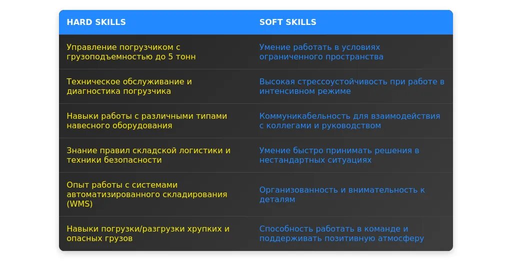 - Перечень востребованных навыков для водителя погрузчика.