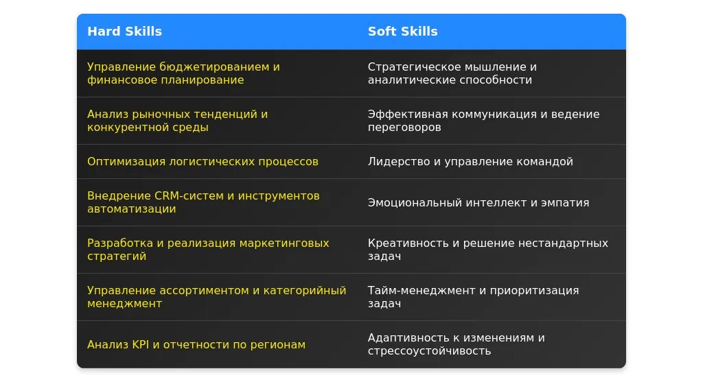 Технические навыки для регионального менеджера розничной сети