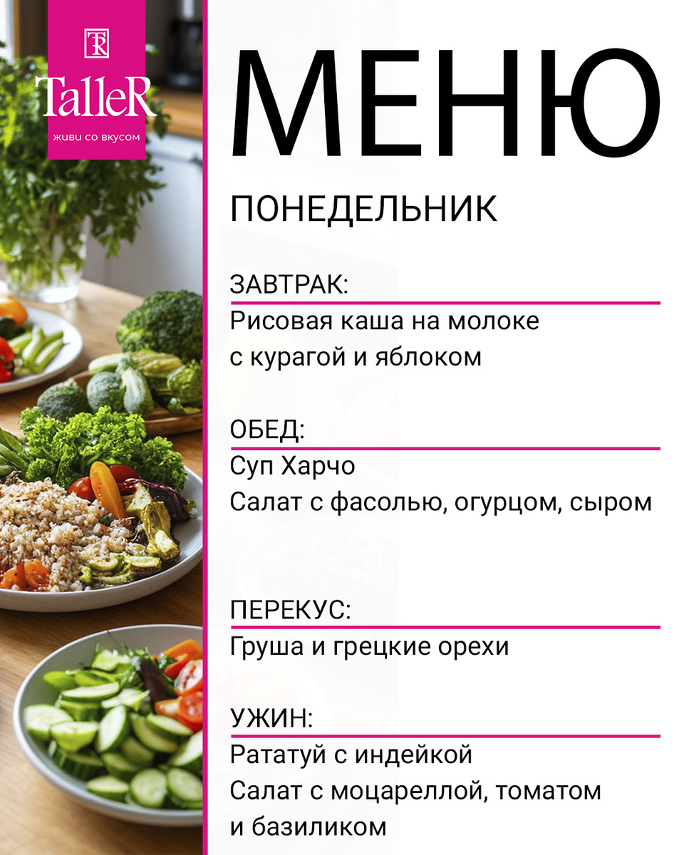 Новое простое меню на неделю для всей семьи ❤️ Сохраните этот пост, чтобы всегда иметь под рукой проверенное меню на неделю! Совет: 🔹 Пейте 1,5-2 литра воды в день #ПолезноеМеню #СемейныеРецепты #ЭкономноеПитание #ЗдоровыеПривычки #TalleR 💡 Сохраните в закладки, чтобы не потерять! 📌