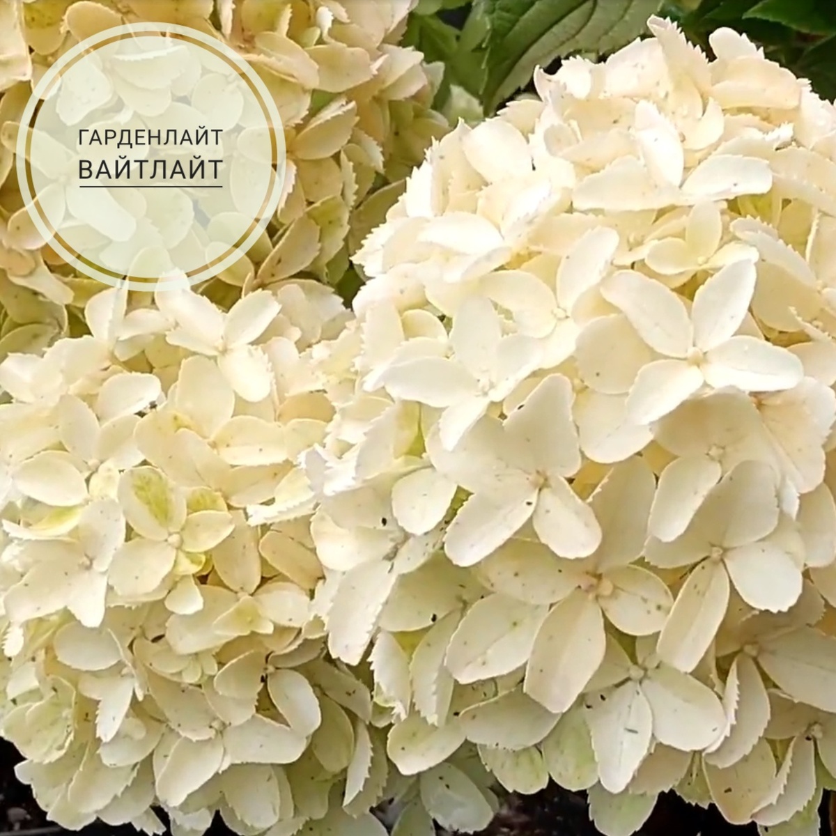Все сорта метельчатой гортензии стартуют в оттенке лайма той или иной интенсивности. Вайтлайт не исключение. Сорт начинает цветение в уверенном лайме с легким оттенком свежей фисташки. По мере роспуска тонкий желтоватый подтон уводит цвет в сторону сливочного оттенка. Но такой период длится не долго - полный роспуск соцветий знаменован сменой цвета на уверенный белоснежный!