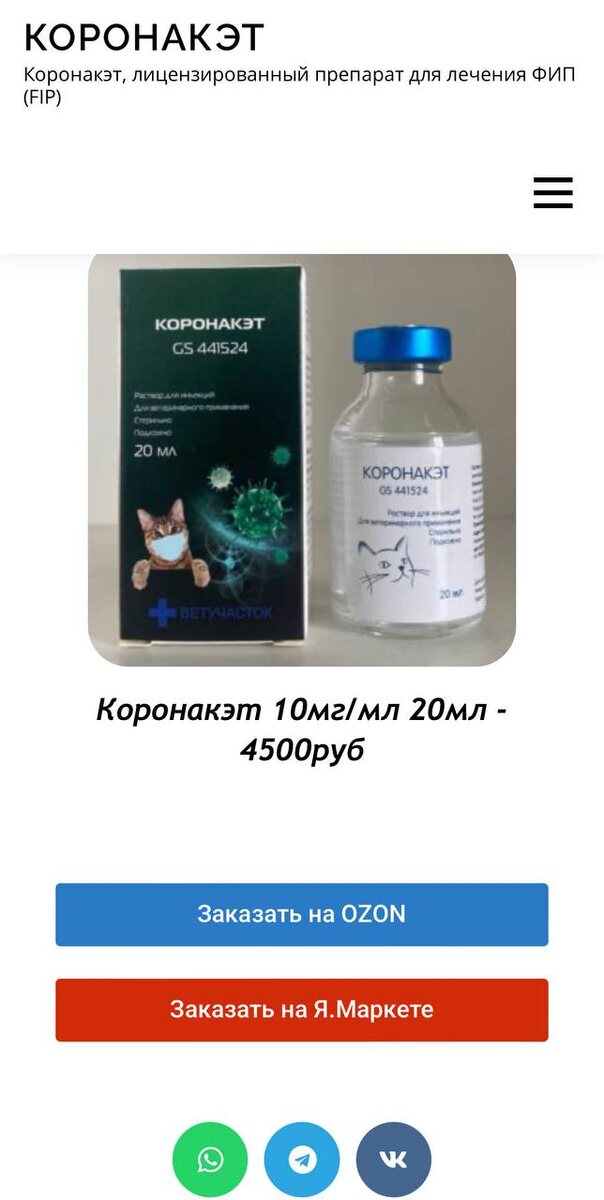 Для вашего удобства добавили на сайт ссылки на наш магазин на Яндекс Маркет и OZON 🤝 Ссылка на наш сайт: koronoket.ru Коронакэт 10мг/мл 20мл доступен к заказу Так же для заказа можете написать нам в личные сообщения @gs_admin_msk Остерегайтесь подделок🙏 Котикам здоровья❤️