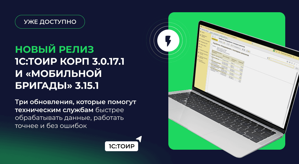 В мае 2025 года компания «Деснол» выпустила обновление 1С:ТОИР КОРП. В версии 3.0.17.1 появилось несколько полезных функций, которые помогут техническим службам быстрее обрабатывать данные, работать точнее и без ошибок.