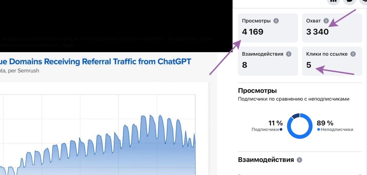ФБ (запрещен в РФ) стал меня приятно удивлять - т.к. я туповат и раньше не догадался включить опцию digital creator, то не не знал сколько же реально просмотров собирают мои публикации... А теперь знаю и удивляюсь (приятно) - это только один пост, см. картинку. В общем вывод такой - работает. ПисАл бы на английском, итоги были бы сильно больше :) Русский ИТ бизнес