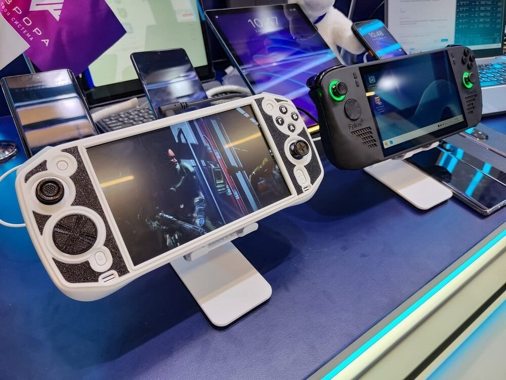 Российская компания Fplus показала три варианта прототипа портативной игровой консоли — аналога популярных Steam Deck и Nintendo Switch. Устройства работают на отечественных ОС Alt OS и Uncom OS (оба на базе Linux), а также на «Авроре» — мобильной ОС с ограниченной поддержкой игр и платной эмуляцией Android-приложений. Особое внимание привлекает внешнее сходство одного из прототипов Fplus с китайской консолью Terrans Force Handheld 5. Это карманный ПК на Windows 11 с AMD Ryzen 7 7840U, Radeon 780M, до 32 ГБ RAM и 7" Full HD экраном с частотой обновления 120 Гц. Стоимость Terrans Force стартует от $1000. Fplus заявляет, что сознательно использует готовые аппаратные решения, а в перспективе намерена перейти на частично российскую элементную базу, включая возможное использование отечественного процессора. Запуск проекта будет возможен при поддержке партнёров и формировании полноценной экосистемы — от разработчиков до дистрибуции контента. Пока это лишь пробный шаг в сторону независимой