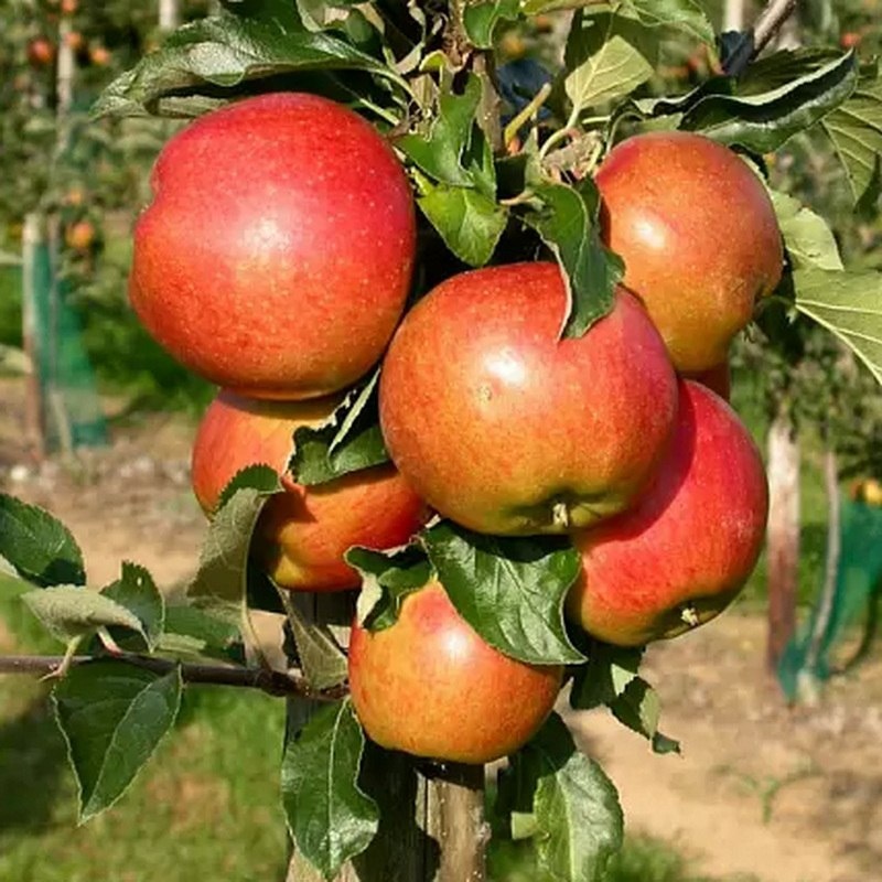 Яблоня Колоновидная Васюган 🍎 Этот сорт идеален для мест с очень суровыми зимами, так как может выдерживать морозы до -40 градусов, но отлично чувствует себя и в более мягких климатических условиях. Эти красные, красивые, вкусные яблочки очень просто собирать, а само дерево неприхотливо в уходе. Плоды дерево дает достаточно крупные, что является несомненным достоинством, ведь большие яблоки так удобно есть и легко перерабатывать на заготовки. Радовать вас урожаем дерево начнет уже в конце августа – начале сентября, и еще целый месяц после этого яблоки будут сохранять свежесть и украшать собой ваши застолья и ежедневные трапезы. Сорт частично-самоплодный. В качестве опылителей хорошо подойдут сорта Медок, Валюта или Президент. Вес плодов 120-180гр.