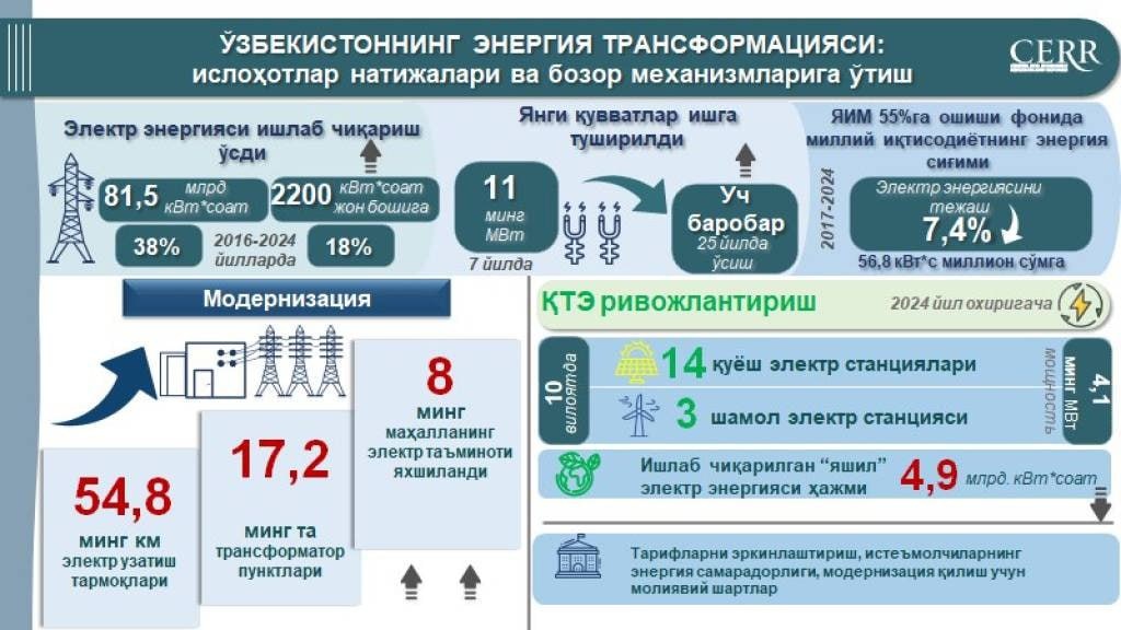 O‘zbekistonda so‘nggi 8 yilda elektr energiyasi ishlab chiqarish hajmi 38 foizga oshdi. @daryolive