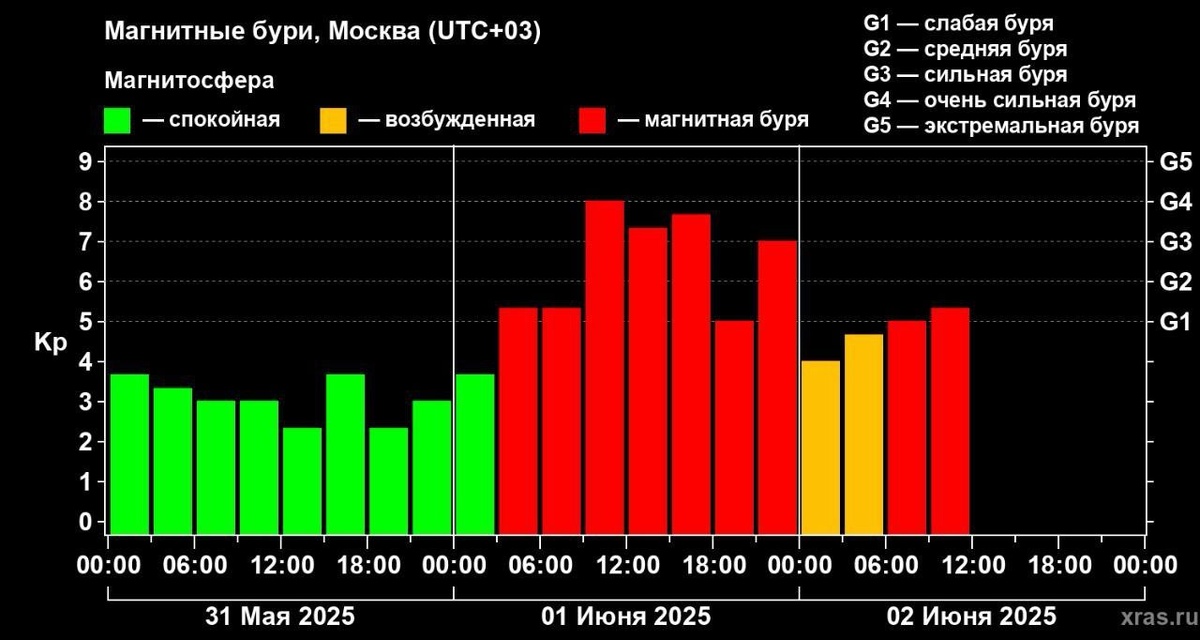 Новая волна сильнейших магнитных бурь началась утром 1 июня.
