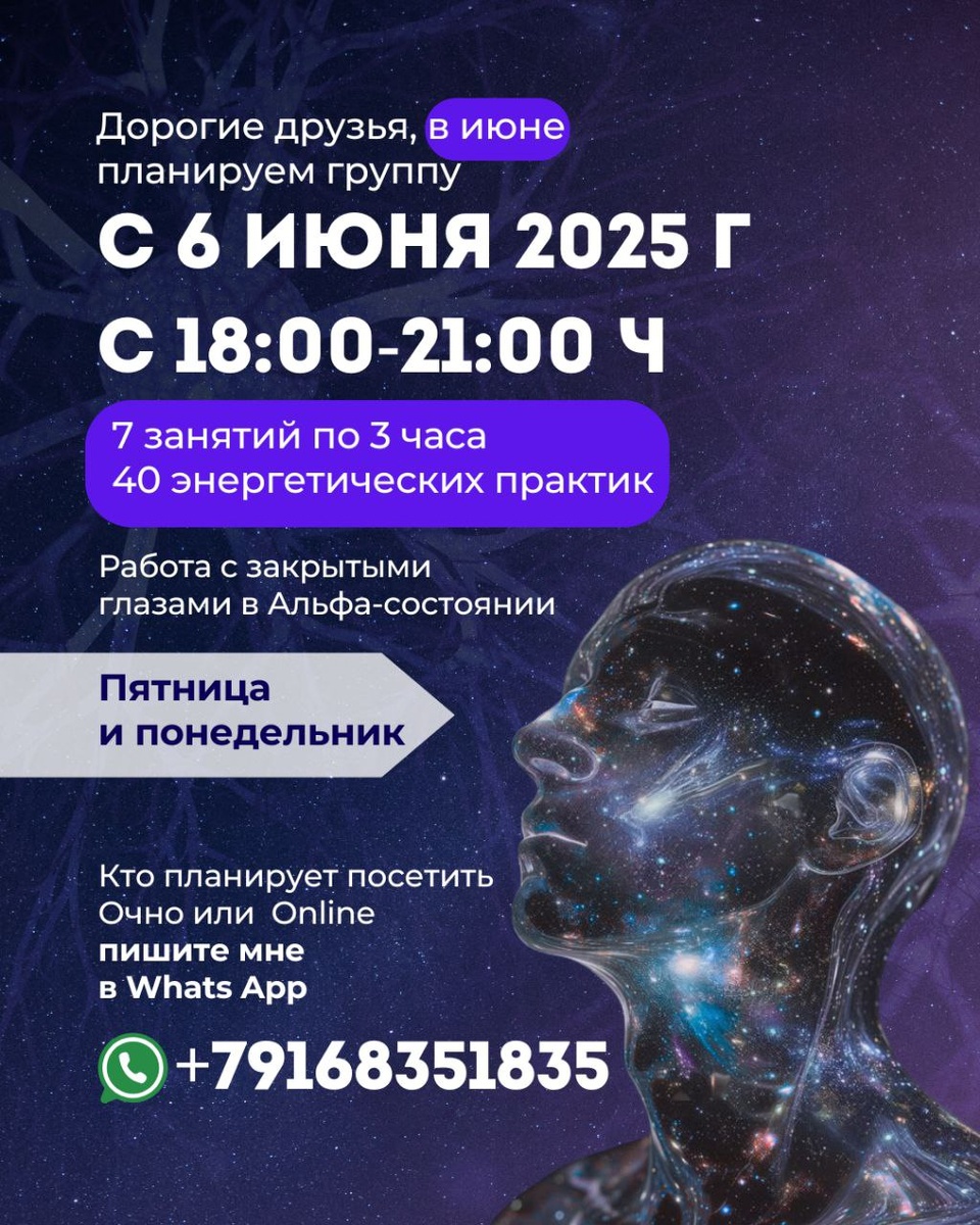 Дорогие друзья, Приглашаем Всех интересующихся, придти на 1 занятие по 1 ступени 6 июня с 18-21ч Метро Тульская познакомится, пообщаться ❤️😘👍 Начинается курс Практических занятий по 1 ступени, всех ждем😇😇😇 Отвечу на Ваши вопросы... Кто давно занимался, приходите, пообщаться и прокачаться😇 в июне планируем 7 занятий по 3 часа График: пятница и понедельник с 18-21ч Всех Ждем❤️❤️❤️ Пишите в личку тг или вотс апп +79168351835