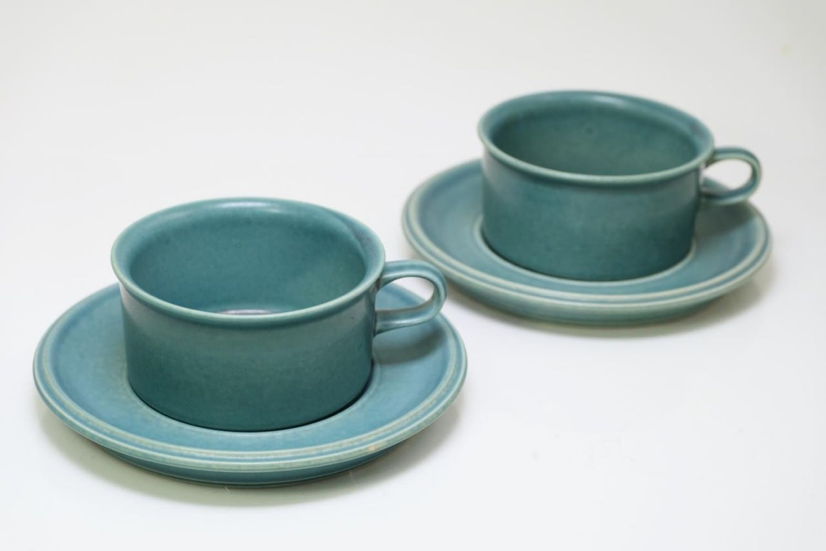 Серия Ruska хорошо известна своим коричневым цветом, но также было выпущено небольшое количество синих Ruska. Он производит иное впечатление, чем коричневый, но цвет приятный и со вкусом подобранный. Представленная нами Brulska имеет хорошо сбалансированную глазурь, а штамп ARABIA на обороте напечатан, поэтому он может отслоиться, если это обычный винтажный предмет. На чашке и блюдце этой «Руски» сохранились штампы, так что, по-видимому, ими мало пользовались. На нем почти нет царапин, так что, хотя его нельзя назвать неиспользованным, он близок к этому. Я никогда не видел Blue Luca в таком хорошем состоянии. Оттенок синего цвета Руски, по-видимому, был нестабильным и варьировался от синего, близкого к коричневому, до темно-синего и зеленоватого оттенков. Именно это и делает его таким привлекательным. Чашки — один из немногих предметов в коллекции Blue Ruska. ☆ Нажмите на маленькие фотографии, чтобы увеличить их. ☆Это винтажный (антикварный) предмет.