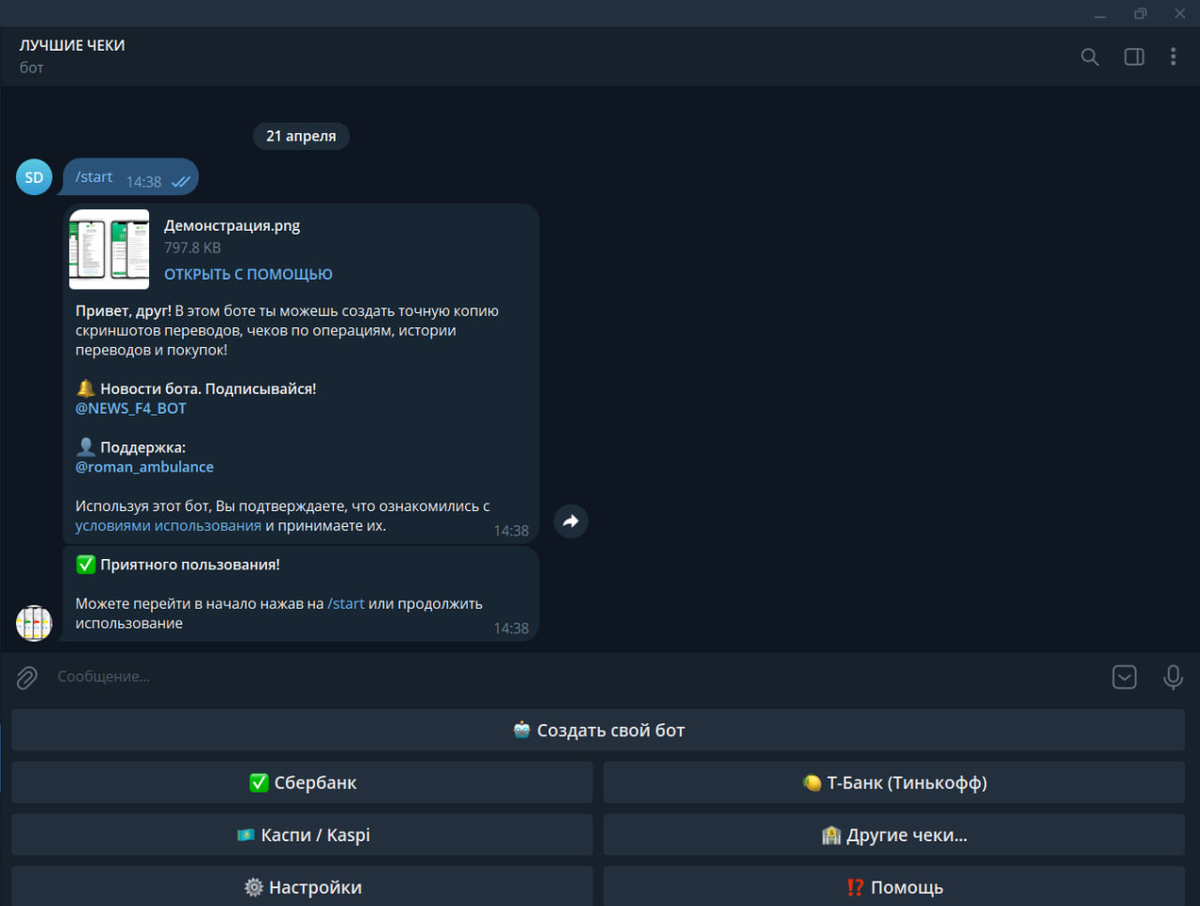 Сегодня мошенники массово используют Telegram-ботов для генерации фальшивых банковских чеков. Подобные схемы могут обернуться для вас не только потерей денег, но и серьезными юридическими проблемами. Всё чаще в интернете можно столкнуться с предложением: "Сделаю чек любого банка для отчёта или подтверждения перевода". Мошенники используют специальные Telegram-боты, которые позволяют сгенерировать реалистичный фальшивый чек за 1-2 минуты. Выглядит он как настоящий: логотип банка, QR-код, сумма перевода, реквизиты, дата и время.