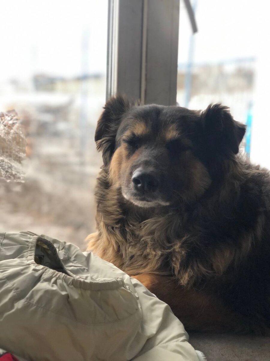 А у нас на окошке собачка живет. Она думает, что она кошка)