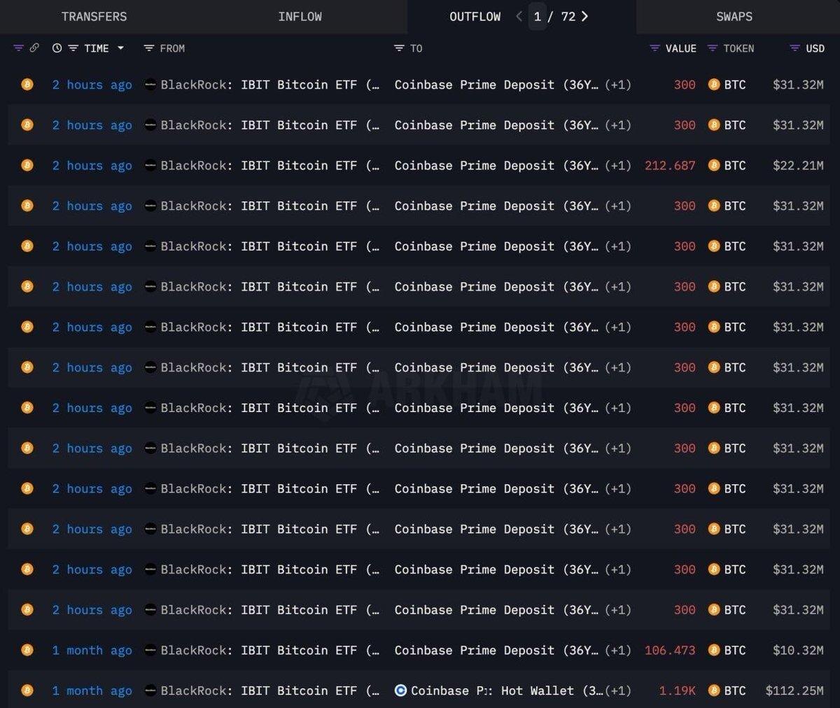 BlackRock перевели 4113 BTC ($429,4 млн) на Coinbase Prime
