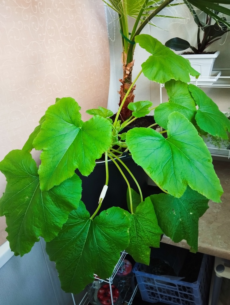 Уже можно подвести итоги моему эксперименту с выращиванием овощей на лоджии. Точно, оно того не стоит с точки зрения экономии. Это всего лишь затратное хобби, и если зимой было интересно вырастить просто что-то зеленое, то летом, когда зелено все вокруг и продаются дешевые вкусные овощи, это вообще не имеет смысла. Кабачок торчит, листья мешаются, отрастил ус, цветки так и не открываются. Ни один. Я так понимаю, на участке за 4 месяца он бы давно плодоносил. Ему мало солнца, и возможно, грунта. Виктория. Вырастила крупные листья, а дальше что-то произошло и она все новые листья выдает наполовину черные и сухие. Я так и не нашла решение. Продолжаю их отрывать. Естественно, нет ни цветов, ни ягод. 9 кустов сидят и что-то им не так. У всех такая проблема. Новое поколение помидоров отрастили первый настоящий листочек. Я одела им на горшки шапочки, чтобы не пересыхали на солнце. Два раза собирала много черри, почти 600гр суммарно. Дозревают в миске. Часть замалосолила. Шкурка у них толста
