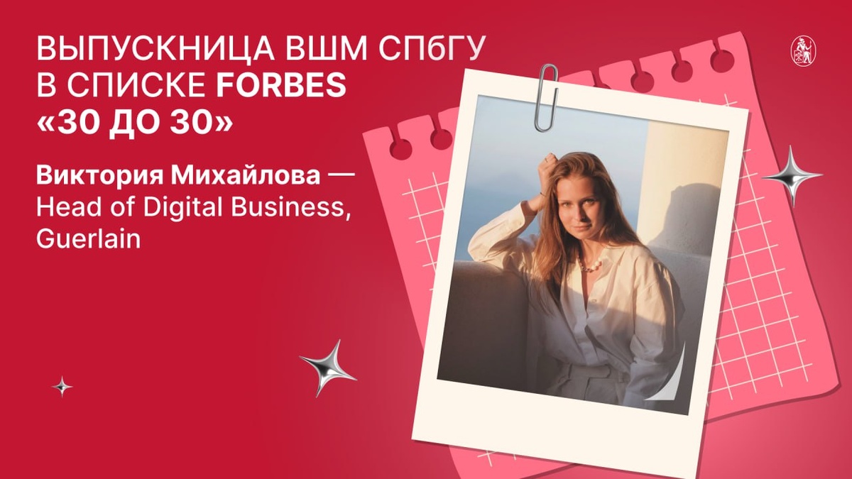 ❤️Наши выпускники не перестают вдохновлять! 👩 Виктория Михайлова, выпускница бакалавриата ВШМ СПбГУ, попала в европейский список Forbes «30 до 30» в категории Retail & Ecommerce. Её карьера началась в Париже со стажировки в Parfums Christian Dior. После работы в других известных домах — Saint Laurent и Guerlain — Виктория быстро поднялась до должности главы по цифровому бизнесу, медиа и CRM Guerlain в Европе, став самым молодым членом регионального исполнительного комитета в истории компании. Под её руководством онлайн-продажи Guerlain выросли на 35% за три года, а бизнес-модель DTC (прямых продаж) получила новое развитие в почти 200-летней истории бренда. 💬 Мы поговорили с Викторией и попросили её дать три главных совета студентам, которые тоже хотят построить карьеру в международном luxury-бизнесе: ➡ Будьте по-настоящему увлечены этой сферой. Настоящий интерес и любовь к индустрии помогут вам преодолевать трудности и выделяться среди других кандидатов. ➡ Изучайте французский и/