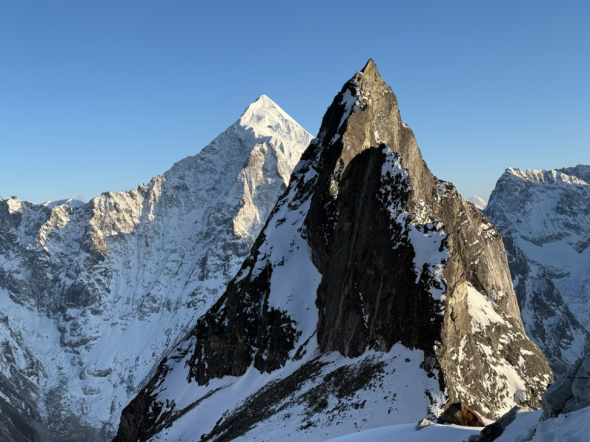 В итоге команде удалось подняться до 6700 м., пока была возможность организовать более менее надежную страховку на скалах. Выше при глубине снега от полуметра и выше подъем стал бы сверхопасным. Зацепиться и укрыться от лавин выше оказалось невозможно. Усердие не должно опережать разум.