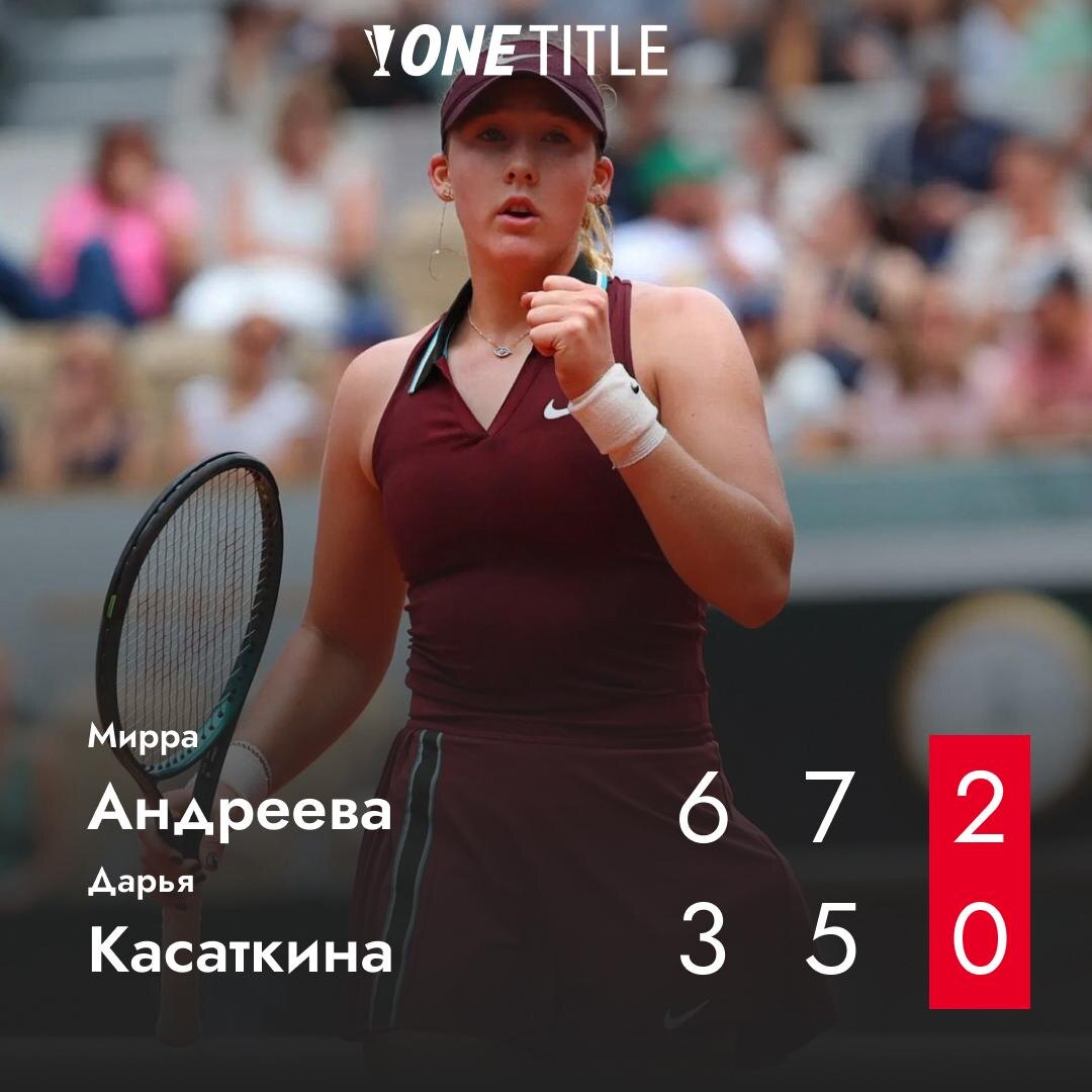 Первая ракетка России Мирра Андреева в матче четвертого круга Открытого чемпионата Франции в двух сетах обыграла выступающую за Австралию Дарью Касаткину. Встреча продолжалась 1 час 34 минуты. В четвертьфинале Андреева встретится с победительницей пары Буассон – Пегула. @onetitle