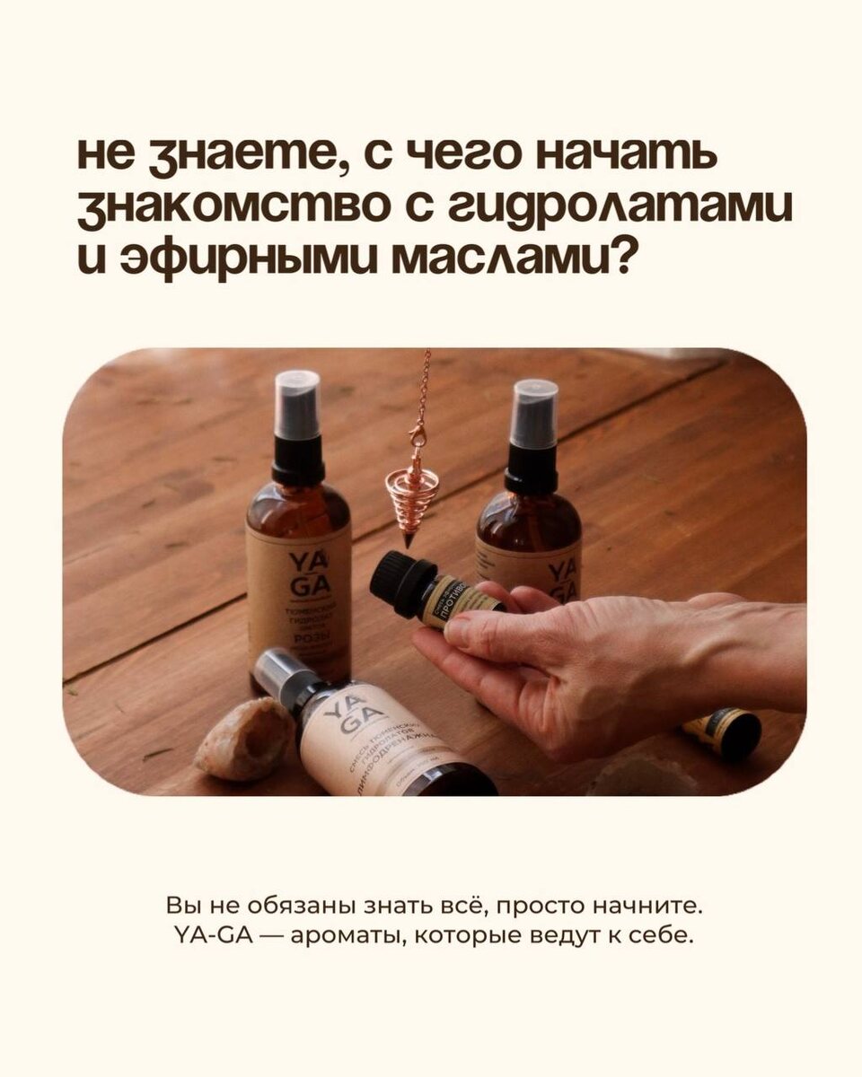 Ароматерапия и натуральный уход могут показаться сложными, особенно в начале. ⠀ Вы слышали о гидролатах и эфирных маслах, но не уверены с чего начать? Позвольте нам подсказать мягкий и понятный путь: 🌿 Шаг 1: Прислушайтесь к себе Что Вам хочется прямо сейчас? — Спокойствия и баланса? Попробуйте масло лаванды и гидролат мелиссы. — Энергии и лёгкости? Масло Апельсина и гидролат розмарина или лимонника. — Заботы о коже? Гидролат розы поможет начать и подойдет любому типу кожи. ⠀ 🌿 Шаг 2: Начните с одного средства Это может быть: — Эфирное масло для ароматизации воздуха, кулона, нанесения на кожу. — Гидролат — как тоник, термальная вода или добавка в воду для освежения и оздоровления. ⠀ 🌿 Шаг 3: Наблюдайте за ощущениями — Комфортен ли Вам аромат? — Чувствуете ли изменения в состоянии или настроении? — Лёгкость — главный ориентир. ⠀ Помните: натуральный уход — это не про правила, а про внимание к себе. ⠀ 💌 Если хочется получить персональную подсказку — напишите нам. Мы с радостью